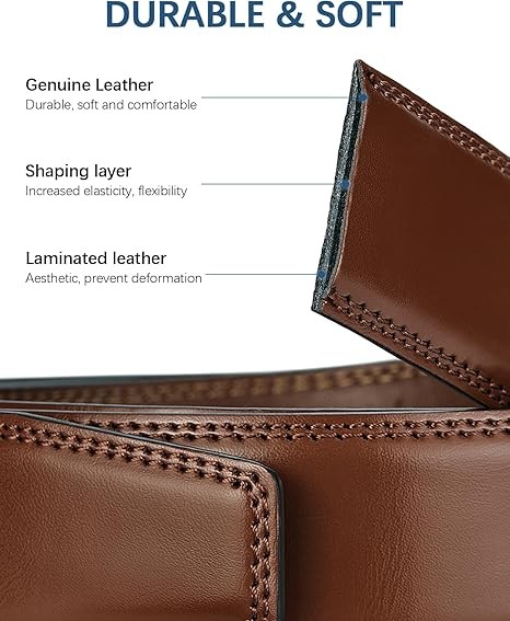 Easy to Use: Loosen and tighten as needed in a second. Just slide the belt into the buckle and pull the leather belt through, the buckle simply auto locks the belt, releasing the buckle by simply shifting the small lever. Cuttable Design: Do You always had issues with belt buckles digging into and always being too big or too small? this leather belt for men come with a long leather belt strap that has lines and sizes so you can cut for optimum length.