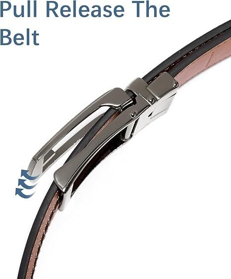 Easy to Use: Loosen and tighten as needed in a second. Just slide the belt into the buckle and pull the leather belt through, the buckle simply auto locks the belt, releasing the buckle by simply shifting the small lever. Cuttable Design: Do You always had issues with belt buckles digging into and always being too big or too small? this leather belt for men come with a long leather belt strap that has lines and sizes so you can cut for optimum length.