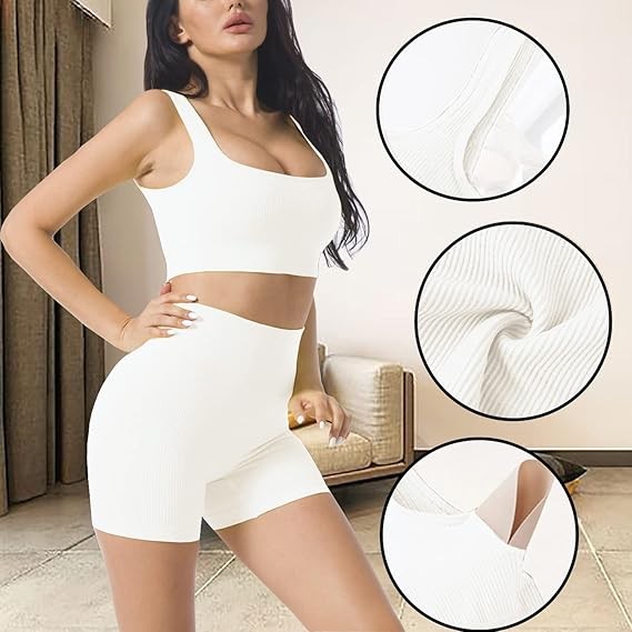 [Comfortable to wear]: The workout sets is lightweight and very comfortable to wear.Our fashion womens workout sets has the perfect combination of compression and stretch. It holds up well during exercise, whether in yoga, weight training or high intensity workout. The women workout outfits are squat proof and supportive. [Unique sports bra]: The removable chest pad gives you freedom of choice and convenience of washing. Wide one shoulder strap make you feel unfettered and doesn't slide down. Our ribbed workout sets for women, girls, athletes, exerciser is high impact and wear-resistant. [High waist shorts]: The bottom set is high waist so that it can tummy control. It cut to a high waist, the supportive structure of our seamless knit fabric, teamed with a stay-put high waistband. It gives you confidence in any situation. The tight stitching technique makes the joint more sturdy and less prone to tearing. [Thick and quality material]: Our ribbed seamless workout set is made of e.90% nylon, 10% elastan The material is breathable, soft, comfy ultra stretchy and not see through. It’ s very thick, have elastic and not tight. Moisture wicking and quick dry. Several popular colors can be selected.