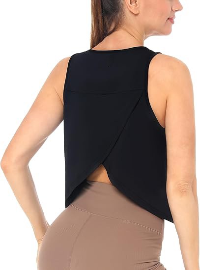 Women's Cropped Workout Tank Tops Open Back Sleeveless Sports Yoga Tops Active Shirts