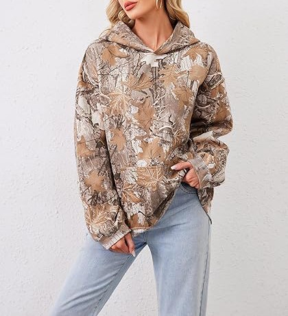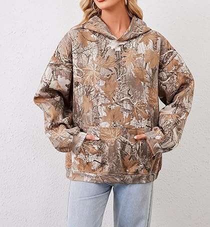 Material:The Maple Leaf Print Oversized Hoodie for women made of cotton blend with fleece lined,the camo basic essential hoodies are thick and comfortable,keep you warm in the fall and winter. Feature:Oversize hoodie for women,basic solid hoodie for men and couples teens,drop shoulder long sleeve with kangaroo pockets.The hoodie’s camouflage pattern not only exudes a sense of adventure but also serves as a symbol of your fearless spirit, ready to conquer the challenges that lie ahead. Match:The oversize camo sweatshirt pullover hoodie is easy to pair with pants, jeans, joggers, shorts; and sneaker, casual shoes to creating a fashion fall and winter outfits.The versatile color palette of the camouflage design effortlessly complements various outfits, making it an essential addition to your wardrobe.