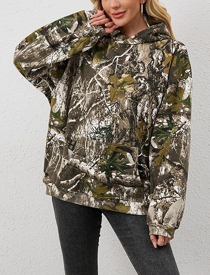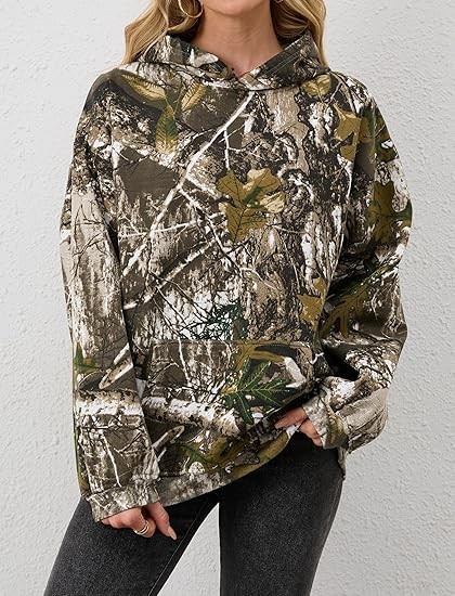 Material:The Maple Leaf Print Oversized Hoodie for women made of cotton blend with fleece lined,the camo basic essential hoodies are thick and comfortable,keep you warm in the fall and winter. Feature:Oversize hoodie for women,basic solid hoodie for men and couples teens,drop shoulder long sleeve with kangaroo pockets.The hoodie’s camouflage pattern not only exudes a sense of adventure but also serves as a symbol of your fearless spirit, ready to conquer the challenges that lie ahead. Match:The oversize camo sweatshirt pullover hoodie is easy to pair with pants, jeans, joggers, shorts; and sneaker, casual shoes to creating a fashion fall and winter outfits.The versatile color palette of the camouflage design effortlessly complements various outfits, making it an essential addition to your wardrobe.