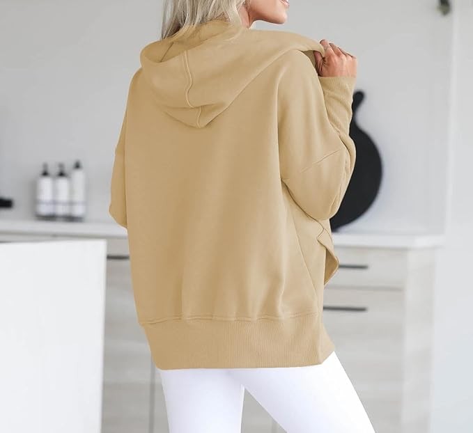 Material: 95% Polyester + 5% Elastane; This trendy cute hoodie top is made of soft and skin-friendly fabric, comfy and comfortable, providing you with a loose and cozy wearing experience. Features: This trendy hoodie sweatshirt for women features long sleeves, a button-down V-neck, a large kangaroo pocket, and an oversized design for a relaxed and baggy appearance. The cuffs, hem, and pocket edges are ribbed for ample elasticity, offering a superior wearing experience suitable for any body type. It's a great addition to your wardrobe. Match:Loose-fitting hoodie tops effortlessly complement various casual bottoms like leggings, pants, jeans, joggers, and shorts, when paired with sneakers or casual shoes, to achieve a stylish and chic appearance during the spring, fall, and winter seasons. Wearing it creates the most beautiful and stylish look. Occasion:This pullover sweatshirt is Perfect for daily, home, school, shopping, going out, club, night out, holiday, weekend, vacation, office, work, date, streetwear, etc.It's also a good gift to your friend or family in spring,fall and winter.