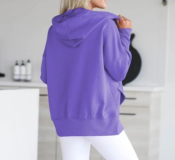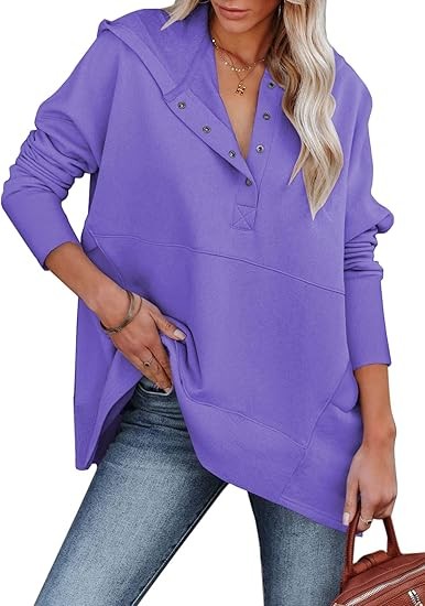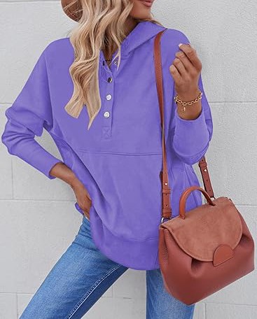 Material: 95% Polyester + 5% Elastane; This trendy cute hoodie top is made of soft and skin-friendly fabric, comfy and comfortable, providing you with a loose and cozy wearing experience. Features: This trendy hoodie sweatshirt for women features long sleeves, a button-down V-neck, a large kangaroo pocket, and an oversized design for a relaxed and baggy appearance. The cuffs, hem, and pocket edges are ribbed for ample elasticity, offering a superior wearing experience suitable for any body type. It's a great addition to your wardrobe. Match:Loose-fitting hoodie tops effortlessly complement various casual bottoms like leggings, pants, jeans, joggers, and shorts, when paired with sneakers or casual shoes, to achieve a stylish and chic appearance during the spring, fall, and winter seasons. Wearing it creates the most beautiful and stylish look. Occasion:This pullover sweatshirt is Perfect for daily, home, school, shopping, going out, club, night out, holiday, weekend, vacation, office, work, date, streetwear, etc.It's also a good gift to your friend or family in spring,fall and winter.