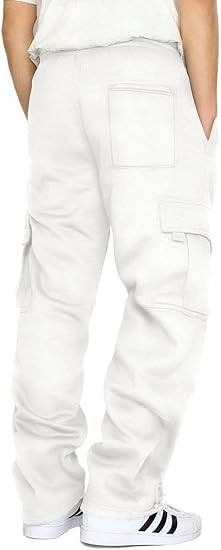 COMFORTABLE MATERIAL: 35% Cotton and 65% Polyester, mens sweatpants made of soft stretch fleece fabric, it’s so comfortable, soft and baggy, loose fit great for outside workout and home around FUNCTIONAL CARGO POCKETS: Two deep side pockets, single back pocket, and two cargo pockets with velco flaps, The fit is very comfortable with plenty of pocket space for wallet, phone and other essentials STYLISH DESIGN: Elastic waistband with adjustable drawstring and drawstring leg cuffs to tighten the bottom. These mens cargo pants are suitable for both men and women, combines fashion and functionality OCCASION: Mens cargo sweatpants great for lounging around, travel days, sports or any situation that you may be looking to be comfortable NOTE: Please refer to the size provided in our picture before buying.For any other questions, please contact us by email