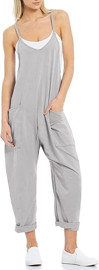 Womens Casual Sleeveless Jumpsuits Spaghetti Strap Loose Romper Long Pants with Pockets