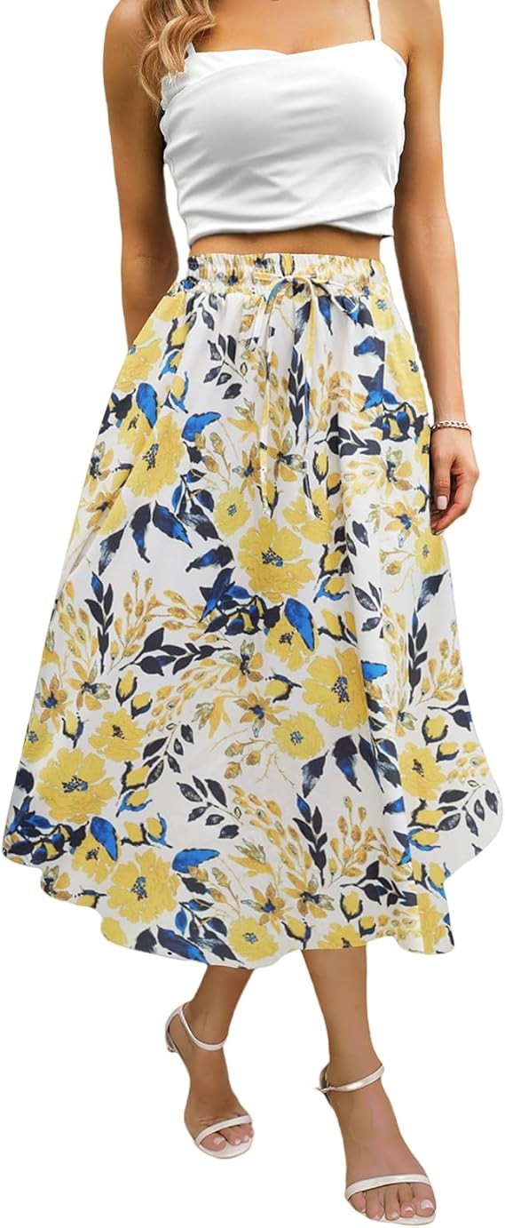 ? 【Hidden Pocket】: These long skirts for women have two large pockets, which can store mobile phones, keys, and other items, freeing your hands. ? 【Elastic Waistband Design】: The elastic waistband of this long skirt has strong elasticity. suitable for most body types, and is super comfortable to wear in spring and summer. ? 【High-Quality Fabric】: These women's skirts are made of high-quality fabric, which is light, soft, breathable, comfortable, and full of texture. Wearing this maxi skirt in summer will make you very comfortable. ? 【Applicable Occasions】:This long maxi skirt can be paired with shirts, high heels, or flat shoes, making you elegant and feminine. It also suits various occasions, such as dating, parties, beaches, holidays, weddings, cocktail parties, and daily leisure.