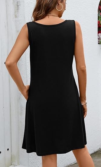 Summer Dresses for Women 2024 Beach Loose Casual A Line Dress Sleeveless V-Neck Sundress with Pockets