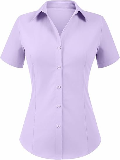 Easy to Create an Elegant Look: Women's button down shirts are made from 100% polyester fiber, comfortable to wear Features Designs: Women's oxford shirt with a spread collar, solid color, and a button-down closure feature a unique cut at the waist that flatters the figure Easy to Partner:Our women's short sleeve button up shirts are perfect for both professional and casual use. This chic women's blouse can be paired with suit pants/leggings for an easy professional/casual look