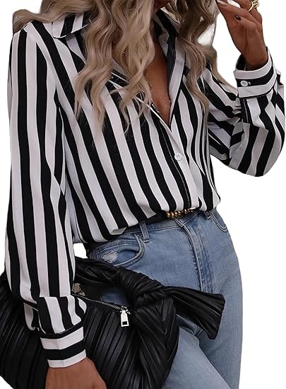 Women Pattern Print Button Down Blouse Top Long Sleeve Work Business Shirt