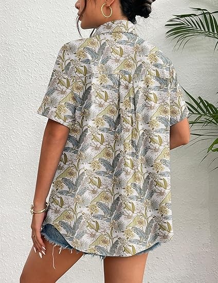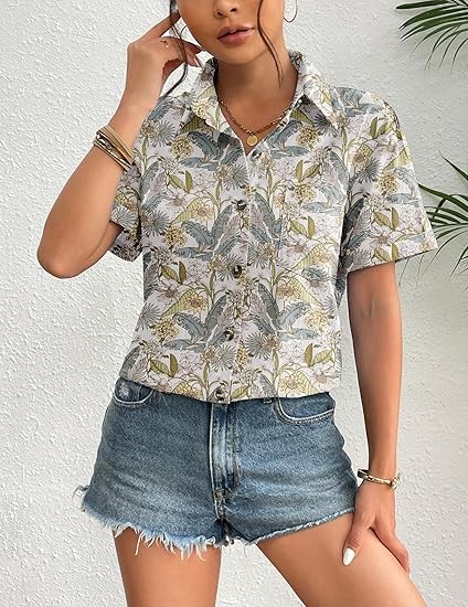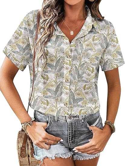 MATERIAL: All cotton fabric women's summer tops, special linen textures, skin-friendly, breathable, soft light, and airy picks for summer, early fall, and spring, providing extreme comfort and charm. FEATURES: Linen tops for women, button closure, short sleeve, loose fit, v-neck, basic turn-down collar shirt, flattering stylish curved hem, boyfriend style, classic, elegant and trendy loose fit shirts. MATCHES: This summer button-down shirt for women is great for casual and work, can be worn alone as a shirt or dressed up with a variety of tank tops, jeans, denim shorts, skirts, sneakers or heels to complete a dressy casual look. OCCASIONS: This Casual shirt is suitable for daily, casual, dating, club, party, street, outdoor, office, informal work, pair it with jackets or fall coats, great for spring & summer & fall wear. Provide you with a casual look that's easy to love all season long.