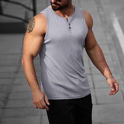 Mens Workout Tank Tops Summer Gym Muscle Ribbed Sleeveless Henley Shirt Casual Knitted Slim Fit Beach
