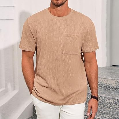 Features: Lightweight pocket tees for men, jacquard textured pattern, crew neck, ribbed neckline, short sleeve, single pocket at chest, loose fit, fashionable oversized men's t-shirt Good Quality: This crewneck t-shirt is made of premium material, jacquard knitted fabric, it is good stretchable, breathable, comfortable, soft and skin-friendly