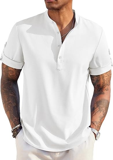 【CASUAL & FASHION】: Mens casual chambray shirt comes with band collar, button-down closure, rounded hem. The henley shirt can be worn with the sleeves rolled up or down, keep you cool and relaxed all the time especially in hot summer.
