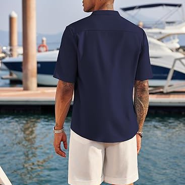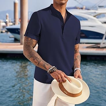 【CASUAL & FASHION】: Mens casual chambray shirt comes with band collar, button-down closure, rounded hem. The henley shirt can be worn with the sleeves rolled up or down, keep you cool and relaxed all the time especially in hot summer.