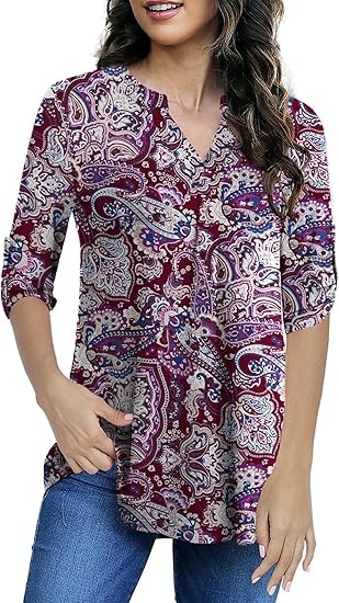 【SIZE】Womens plus size tops, plus size blouses for women, 6 US sizes(M,L,1X,2X,3X,4X) 【FEATURES】Floral Print, 3/4 sleeve, fashion V neck design,plus size tops for women, swing hem drapes nicely and hides your belly & hips well, adds femininity 【PAIRS WITH】Plus size 3/4 sleeve tops for women, plus size blouse, match this plus tunics with jeans, leggings in Spring, Summer and Fall 【OCCASIONS】 Dressy casual business fashion comfy loose fitting womens plus size blouses, Suitable for Office/ Dating/ Formal Occasions/ Daily Casual Wear/ Workwear, etc