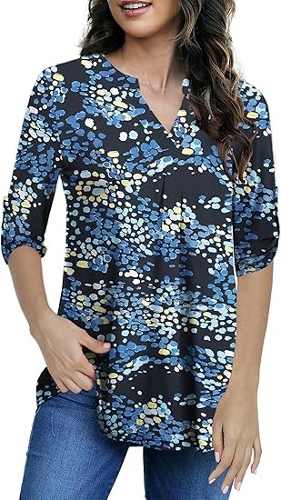 Womens Tops Dressy Casual 3/4 Sleeve Shirts Tunic Blouses Plus Size Tops for Women
