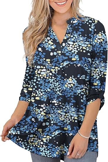 【SIZE】Womens plus size tops, plus size blouses for women, 6 US sizes(M,L,1X,2X,3X,4X) 【FEATURES】Floral Print, 3/4 sleeve, fashion V neck design,plus size tops for women, swing hem drapes nicely and hides your belly & hips well, adds femininity 【PAIRS WITH】Plus size 3/4 sleeve tops for women, plus size blouse, match this plus tunics with jeans, leggings in Spring, Summer and Fall 【OCCASIONS】 Dressy casual business fashion comfy loose fitting womens plus size blouses, Suitable for Office/ Dating/ Formal Occasions/ Daily Casual Wear/ Workwear, etc