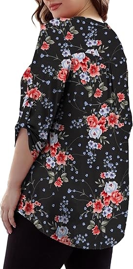 【SIZE】Womens plus size tops, plus size blouses for women, 6 US sizes(M,L,1X,2X,3X,4X) 【FEATURES】Floral Print, 3/4 sleeve, fashion V neck design,plus size tops for women, swing hem drapes nicely and hides your belly & hips well, adds femininity 【PAIRS WITH】Plus size 3/4 sleeve tops for women, plus size blouse, match this plus tunics with jeans, leggings in Spring, Summer and Fall 【OCCASIONS】 Dressy casual business fashion comfy loose fitting womens plus size blouses, Suitable for Office/ Dating/ Formal Occasions/ Daily Casual Wear/ Workwear, etc