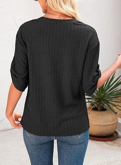 Women's Short Sleeve Shirts is made with lightweight and soft material, which are smooth, elastic and stretchable, flexible and breathable, comfortable to wear. Feature: Tops for Women Trendy, Short Sleeve Shirts for Women, Womens Casual Dressy Tops, Solid Color, Embroidered Tops For Women, Ladies Tops and Blouses, Crew Neck, Business Casual Outfits, Rolled Hem Batwing Sleeve, Unique Knitting Pattern, Loose Fit Pullover Top. Match: The ladies tops and shirts made of soft fabric, you will feel comfortable when wearing it. Easily paired with jeans, skinny leggings, shorts and high boots. Also, you can show your collarbone with a nice necklace. Ocassion: This womens summer tops is suitable for vacation, holiday, party, work, beach, street, sport, workout, occasions in summer, spring, fall and winter days.