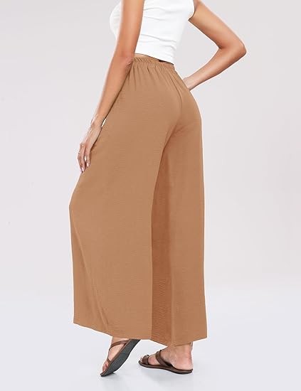 Classic &Comfort】Wide leg high waisted pants for women are made of high quality linen & cotton blend fabric, flowy beach pants lightweight and soft, skin-friend. 【Note Size】Loose dress pants for women for S- XXL, please refer to the picture on detail page ,loose pants for women high waist,wide leg beach pants for women,high waisted boho pants, flowy pants for women,high wasted pants,tie front flowy wide leg pants. 【More unique design】Womens high waisted wide leg pants are designed with solid color. loose fit palazzo pants for women with two pocket,wide leg pants, flowy summer pants,beach cover up pants,elastic waist, bow tie,suitable for all shapes and sizes 【Perfect for More Occasions】Summer dress pants for women who go from the office to casual life with the whole process, yoga, jogging, hiking, outdoor activities, casual wear, home wear, streetweat, going out, vacation or beach wear. summer wide leg pants for women 2024 suit all occasion.