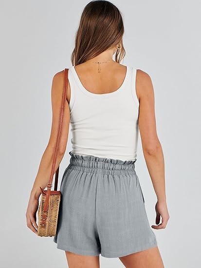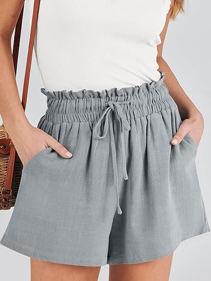 Linen Shorts for Women Casual High Waisted Wide Leg Drawstring Cute Summer Beach Shorts 2024 Fashion Vacation Outfit