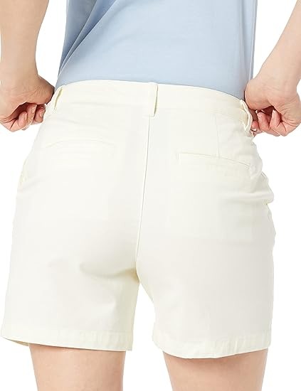 CLASSIC KHAKI SHORT: These classic Khaki shorts are the ultimate summer style. Offering a clean, gently structured silhouette, these shorts also fit with comfort and ease for at work, weekend exploring, or running errands. Complete your look with Essentials Women's Sneakers or Sandals.