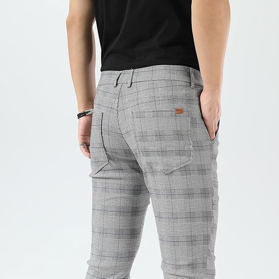 Men's Plaid Pants Skinny Dress Pants for Men Skinny Chino Pants Men