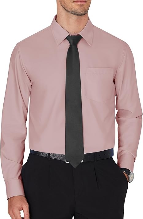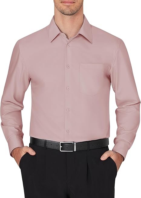 WRINKLE-FREE: The mens dress shirt is made of high quality fabrics and special craftsmanship, wrinkle-resistant and easy to iron and care for, keep the appearance neat and clean, provide you with a comfortable wearing experience CLASSIC DESIGN: This wrinkle-free shirt features a single chest pocket for small items or decorations. Spread collar, button placket, adjustable cuffs for a classic look that flatters most body shapes OCCASION: Business/ Wedding/ Party/ Dating/ Office/ Nightclub, this mens formal shirt is the perfect choice for both formal events and everyday casual wear when paired with a suit, vest, bow tie, and dress pants Size: The button down long sleeve shirts are US regular fit tailoring style,a variety of sizes and colors for you to choose,please refer to the size chart to choose the size that suits you Washing Method: Mens shirt is recommended to hand wash or machine wash in cold water to protect the fabric's texture and color. The dress shirt can be ironed at low temperatures