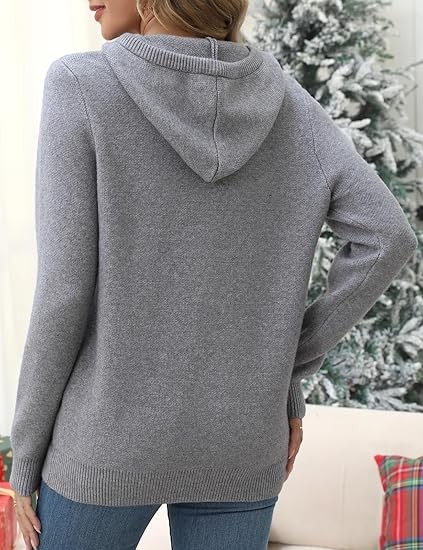 For an oversized look, choose your normal size; for a fitted look, choose one size smaller. Please consult the size chart before placing your order to ensure the best fit. Model is wearing size S and is 5'9'' tall, BWH: 33.8'', 24.8'', 36.2''. S=4-6, M=8-10, L=12-14, XL=16-18. Fall Oversized Hoodies: Wear this cozy trendy sweater hoodie with three buttons that you can open or close as needed. The cuffs and hem are designed with elastic ribbed patterns, adding a sense of fashion and fit. Knitted Long Sleeve Sweatshirts: Comfy drawstring hoodie with a kangaroo pocket is a classic design that gives you a casual style. It is also convenient to carry things like phone or keys and keep your hands warm.