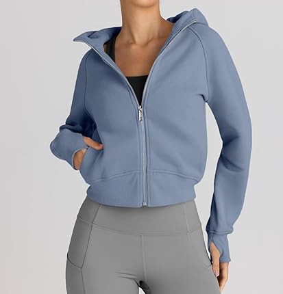 Womens Zip Up Hoodies Jackets Cropped Sweatshirts Fleece Fall Outfits Casual Comfy Y2k Tops Winter Clothes 2034