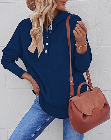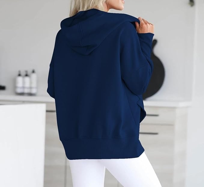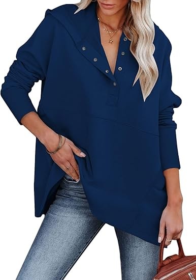 Material: 95% Polyester + 5% Elastane; This trendy cute hoodie top is made of soft and skin-friendly fabric, comfy and comfortable, providing you with a loose and cozy wearing experience. Features: This trendy hoodie sweatshirt for women features long sleeves, a button-down V-neck, a large kangaroo pocket, and an oversized design for a relaxed and baggy appearance. The cuffs, hem, and pocket edges are ribbed for ample elasticity, offering a superior wearing experience suitable for any body type. It's a great addition to your wardrobe. Match:Loose-fitting hoodie tops effortlessly complement various casual bottoms like leggings, pants, jeans, joggers, and shorts, when paired with sneakers or casual shoes, to achieve a stylish and chic appearance during the spring, fall, and winter seasons. Wearing it creates the most beautiful and stylish look. Occasion:This pullover sweatshirt is Perfect for daily, home, school, shopping, going out, club, night out, holiday, weekend, vacation, office, work, date, streetwear, etc.It's also a good gift to your friend or family in spring,fall and winter.