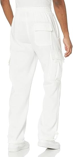 COMFORTABLE MATERIAL: 35% Cotton and 65% Polyester, mens sweatpants made of soft stretch fleece fabric, it’s so comfortable, soft and baggy, loose fit great for outside workout and home around FUNCTIONAL CARGO POCKETS: Two deep side pockets, single back pocket, and two cargo pockets with velco flaps, The fit is very comfortable with plenty of pocket space for wallet, phone and other essentials STYLISH DESIGN: Elastic waistband with adjustable drawstring and drawstring leg cuffs to tighten the bottom. These mens cargo pants are suitable for both men and women, combines fashion and functionality OCCASION: Mens cargo sweatpants great for lounging around, travel days, sports or any situation that you may be looking to be comfortable NOTE: Please refer to the size provided in our picture before buying.For any other questions, please contact us by email