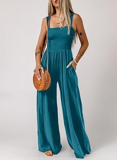 Women's Overalls is made with lightweight and soft material, which are smooth, elastic and stretchable, flexible and breathable, comfortable to wear. Not see through. Feature: One Piece Sleeveless Jumpsuits, Square Neck, Wide Leg Pants, Two Side Pockets, Solid Color, Stretchable Long Pants Jumpsuit, Loose Fit, Casual Style. Match: Great with jacket, sneakers, Sandals, Heels and Beach hat for outwear. A perfect jumpsuit for your summer. Wear a cardigan over wide leg jumpsuit /dress on cool weather. Ocassion: One Piece Fashion Long Jumpsuit Overalls Suitable for Beach, Travel, Vacation, Office, Streetwear, Cocktail, Daily Life. Perfect Match with T-Shirts, Tops, Blouse and Sneakers.