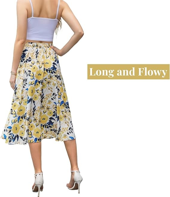 ? 【Hidden Pocket】: These long skirts for women have two large pockets, which can store mobile phones, keys, and other items, freeing your hands. ? 【Elastic Waistband Design】: The elastic waistband of this long skirt has strong elasticity. suitable for most body types, and is super comfortable to wear in spring and summer. ? 【High-Quality Fabric】: These women's skirts are made of high-quality fabric, which is light, soft, breathable, comfortable, and full of texture. Wearing this maxi skirt in summer will make you very comfortable. ? 【Applicable Occasions】:This long maxi skirt can be paired with shirts, high heels, or flat shoes, making you elegant and feminine. It also suits various occasions, such as dating, parties, beaches, holidays, weddings, cocktail parties, and daily leisure.