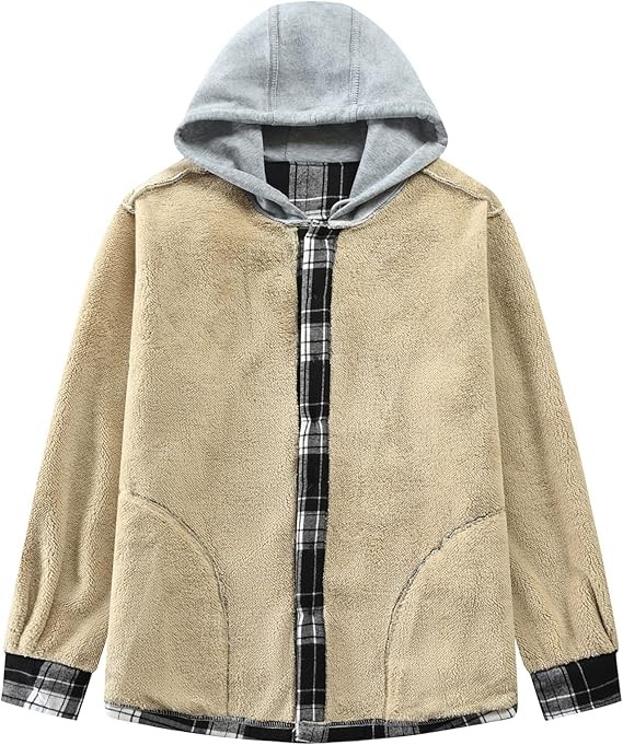 Comfortable Fit: This long sleeve flannel shirt crafted with a 100% Cotton flannel shell and soft beige sherpa lining will keep you warm all season long. Your new wardrobe favorite. Features: Button, long sleeves(The sleeves lined), 2 side pockets, drawstring hood, plaid element outer and fuzzy fleece inside, to provide extra warmth and comfort. Size: Our flannel shirts are regular fit style, a variety of sizes and colors for you to choose, please refer to the size chart to choose the size that suits you. Occasion: This is a versatile hooded jacket that will look stylish with your Tshirt and jeans. Perfect For Daily Wear, such as hiking, trekking, camping, hunting, biking and other outdoor activities. Any occasion is perfect in Spring, Fall and Winter.