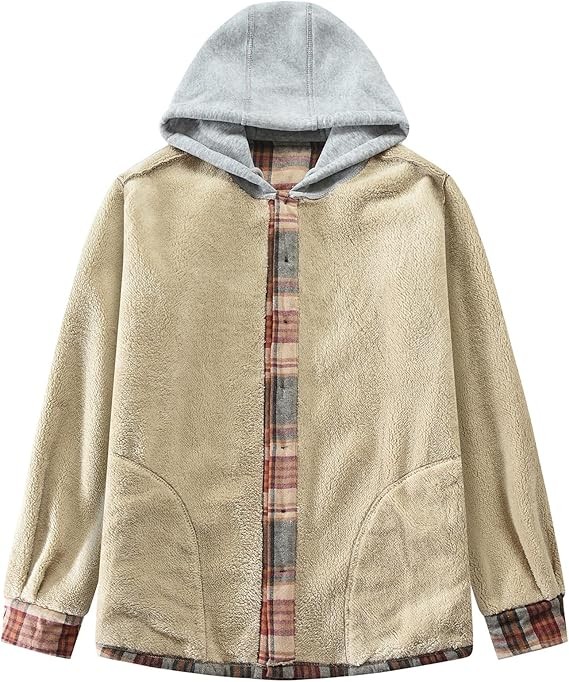 Comfortable Fit: This long sleeve flannel shirt crafted with a 100% Cotton flannel shell and soft beige sherpa lining will keep you warm all season long. Your new wardrobe favorite. Features: Button, long sleeves(The sleeves lined), 2 side pockets, drawstring hood, plaid element outer and fuzzy fleece inside, to provide extra warmth and comfort. Size: Our flannel shirts are regular fit style, a variety of sizes and colors for you to choose, please refer to the size chart to choose the size that suits you. Occasion: This is a versatile hooded jacket that will look stylish with your Tshirt and jeans. Perfect For Daily Wear, such as hiking, trekking, camping, hunting, biking and other outdoor activities. Any occasion is perfect in Spring, Fall and Winter.