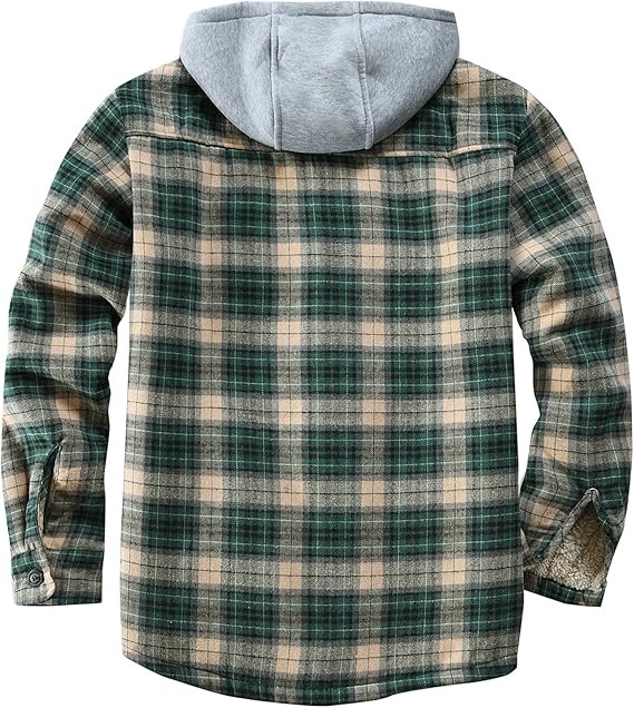 Comfortable Fit: This long sleeve flannel shirt crafted with a 100% Cotton flannel shell and soft beige sherpa lining will keep you warm all season long. Your new wardrobe favorite. Features: Button, long sleeves(The sleeves lined), 2 side pockets, drawstring hood, plaid element outer and fuzzy fleece inside, to provide extra warmth and comfort. Size: Our flannel shirts are regular fit style, a variety of sizes and colors for you to choose, please refer to the size chart to choose the size that suits you. Occasion: This is a versatile hooded jacket that will look stylish with your Tshirt and jeans. Perfect For Daily Wear, such as hiking, trekking, camping, hunting, biking and other outdoor activities. Any occasion is perfect in Spring, Fall and Winter.