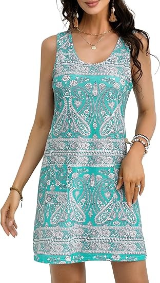 Material: Summer Dresses for women Crafted from 95% polyester and 5% elastane, womens summer dresses offers a soft, stretchy fit that resists shrinking, providing lasting comfort throughout the day. Features:Sleeveless dress for women features a vibrant print with a relaxed round neckline and flattering A-line silhouette, giving off a chic Boho dresses. Beach dress sleeveless design makes it perfect for summer. Occasion:Summer dresses perfect for casual outings, daily wear, family events, the beach, work, party,club,church,holiday,outgoing vacations, dates, shopping, and school. women's casual dresses easily transitions from casual to stylish, making it ideal for spring, summer, and fall.