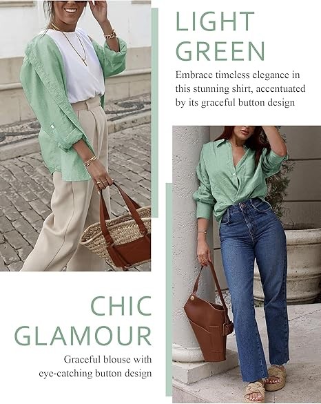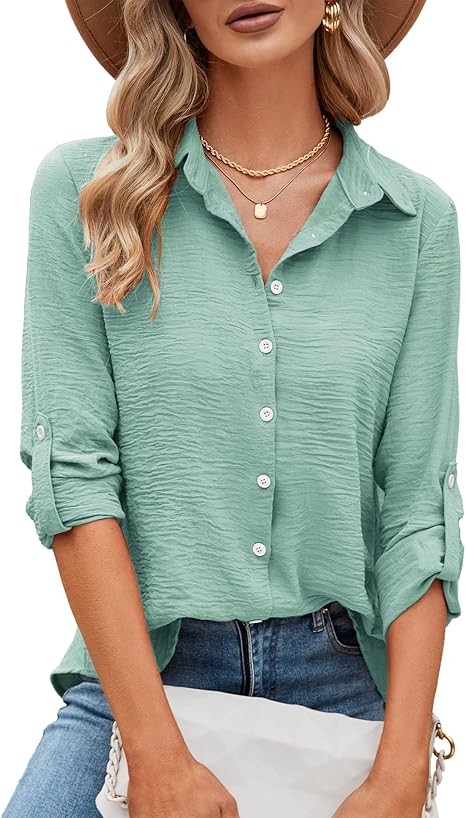 Effortless Elegance: Introducing a must-have for your closet—the women's clothing! Slip into the carefree energy of our blouses & button-down shirts and share your style masterpieces with us. Perfect for every occasion, these work shirts for women seamlessly elevate your look, be it for casual days, work, travel, or a night out.