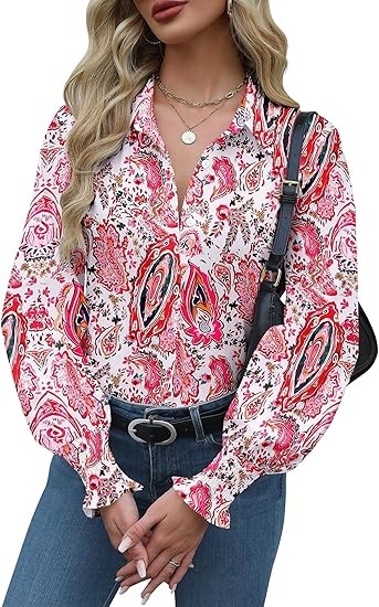 Soft Fabric: This striped/patterned shirt is crafted from a skin-friendly and lightweight material that feels gentle against your skin Stylish Design: Classic V-neck and smocked cuff sleeve design can well modify your neck and arms, make you look more slender and charming. Additionally, we offer a variety of stylish floral patterns to showcase your feminine charm Occasions to Wear: Perfect for work, office, vacation, party, club, and daily life in Spring Summer and Fall. It pairs beautifully with jeans, trousers, skirts, and shorts Size Note: Please Refer to the size chart before ordering, anyother questions, please feel free to contact us