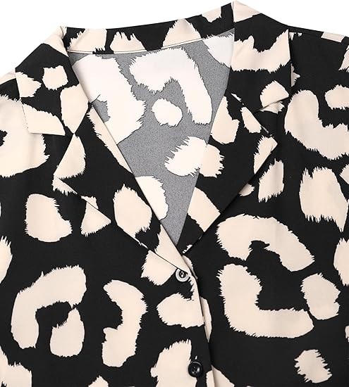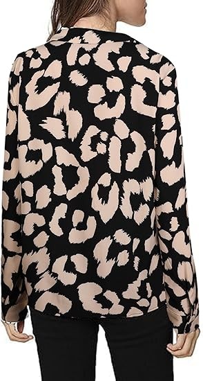 [Material]: The business casual blouse made of Polyester, chiffon feeling fabric and no stretch; very soft and comfy, close to skin [Features]: Dalmation print shirt for women, casual v neck, long sleeve, button down, lapel collar, trendy leopard print / polka dot print / solid color, relaxed fit [Occasion]: Elegant work blouse, with stylish printed pattern, perfect for work, business, office, date, cocktail, club, wedding, holiday, shopping or daily casual wear [Style]: Casual, elegant and cute style, this fashion leopard print top can be worn with denim jeans, skinny pants, shorts, boots and heels in Summer/ Fall/ Winter/ Spring