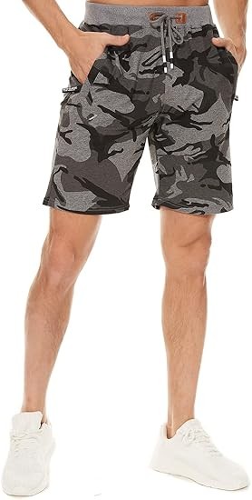 Mens Shorts Casual Drawstring Zipper Pockets Elastic Waist