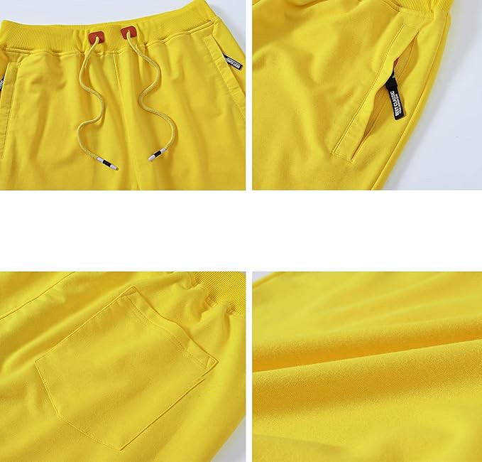 Zipper pockets Elastic waistband Fits waist size: 28-48 etc Breathable stretch fabric Suitable for casual, sports, home and outdoor wear etc