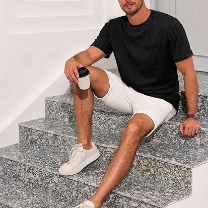 Features: Lightweight pocket tees for men, jacquard textured pattern, crew neck, ribbed neckline, short sleeve, single pocket at chest, loose fit, fashionable oversized men's t-shirt