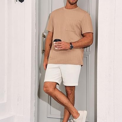 Features: Lightweight pocket tees for men, jacquard textured pattern, crew neck, ribbed neckline, short sleeve, single pocket at chest, loose fit, fashionable oversized men's t-shirt Good Quality: This crewneck t-shirt is made of premium material, jacquard knitted fabric, it is good stretchable, breathable, comfortable, soft and skin-friendly