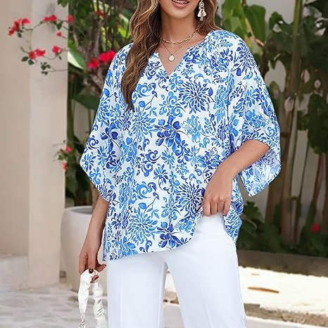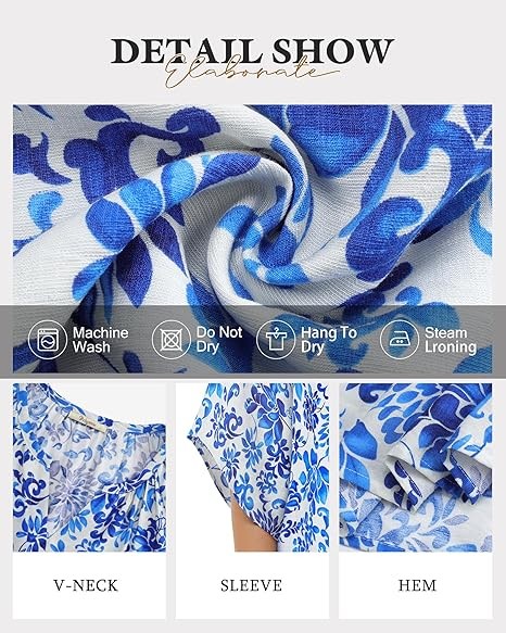 BOHO FLORAL PRINT: The paisley print on this half sleeves loose top gives it a boho vibe, gives you a flowy feeling. The print is in bright colors, making it a standout piece in your collection of chic blouses.The material of this retro and fashion tunic shirts is breathable,lightweight and soft.Fabric that feels like linen makes you more cool IRREGULAR BELL SLEEVES: Turn heads with fashion-forward 3/4 length bell sleeves featuring subtle cutouts. The playful yet polished silhouette flatters every arm shape while adding movement to your step. HIGHLIGHTS: With the subtle floral pattern and the charming split v neckline, the boho shirt tops looks feminine and casual at the same time. and the flowy blouse with a slightly longer cut, which can skilfully conceals hip areas
