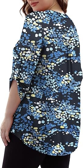 【SIZE】Womens plus size tops, plus size blouses for women, 6 US sizes(M,L,1X,2X,3X,4X) 【FEATURES】Floral Print, 3/4 sleeve, fashion V neck design,plus size tops for women, swing hem drapes nicely and hides your belly & hips well, adds femininity 【PAIRS WITH】Plus size 3/4 sleeve tops for women, plus size blouse, match this plus tunics with jeans, leggings in Spring, Summer and Fall 【OCCASIONS】 Dressy casual business fashion comfy loose fitting womens plus size blouses, Suitable for Office/ Dating/ Formal Occasions/ Daily Casual Wear/ Workwear, etc