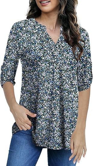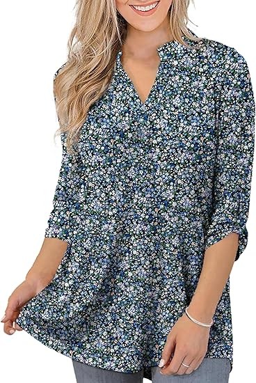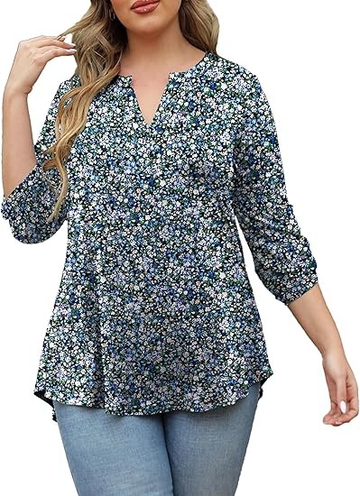 【SIZE】Womens plus size tops, plus size blouses for women, 6 US sizes(M,L,1X,2X,3X,4X) 【FEATURES】Floral Print, 3/4 sleeve, fashion V neck design,plus size tops for women, swing hem drapes nicely and hides your belly & hips well, adds femininity 【PAIRS WITH】Plus size 3/4 sleeve tops for women, plus size blouse, match this plus tunics with jeans, leggings in Spring, Summer and Fall 【OCCASIONS】 Dressy casual business fashion comfy loose fitting womens plus size blouses, Suitable for Office/ Dating/ Formal Occasions/ Daily Casual Wear/ Workwear, etc
