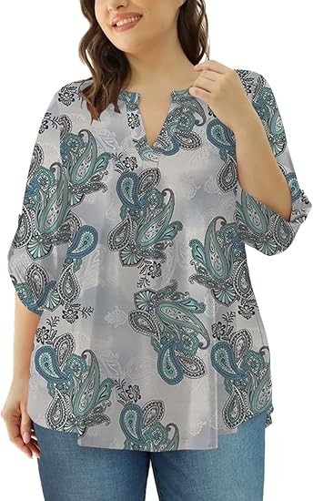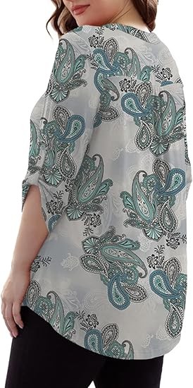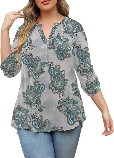 【SIZE】Womens plus size tops, plus size blouses for women, 6 US sizes(M,L,1X,2X,3X,4X) 【FEATURES】Floral Print, 3/4 sleeve, fashion V neck design,plus size tops for women, swing hem drapes nicely and hides your belly & hips well, adds femininity 【PAIRS WITH】Plus size 3/4 sleeve tops for women, plus size blouse, match this plus tunics with jeans, leggings in Spring, Summer and Fall 【OCCASIONS】 Dressy casual business fashion comfy loose fitting womens plus size blouses, Suitable for Office/ Dating/ Formal Occasions/ Daily Casual Wear/ Workwear, etc
